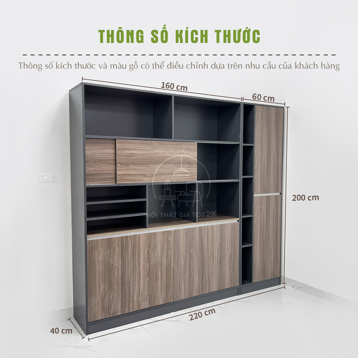 | Rộng: 220 x Cao: 200 x Sâu: 40 cm |