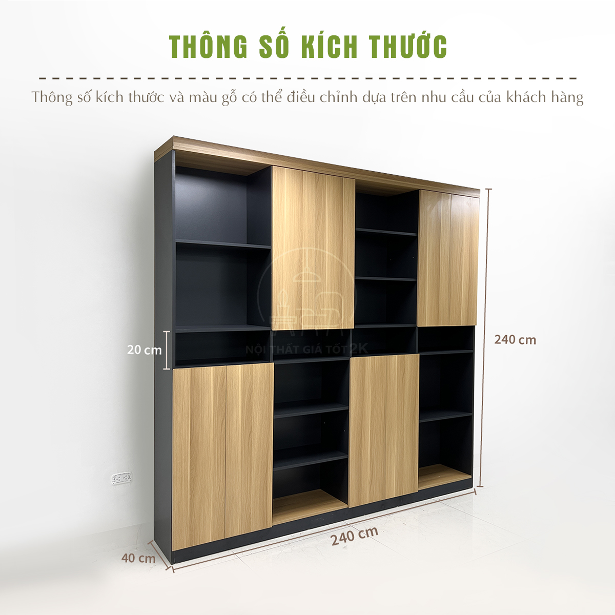 Sử dụng chất liệu gỗ MFC cao cấp phủ melamine, tủ TGD037 đảm bảo độ bền bỉ, chống ẩm mốc và trầy xước, đồng thời giữ được màu sắc và vẻ đẹp theo thời gian. Đây là sản phẩm lý tưởng cho những giám đốc mong muốn một không gian làm việc tiện nghi và đẳng cấp.