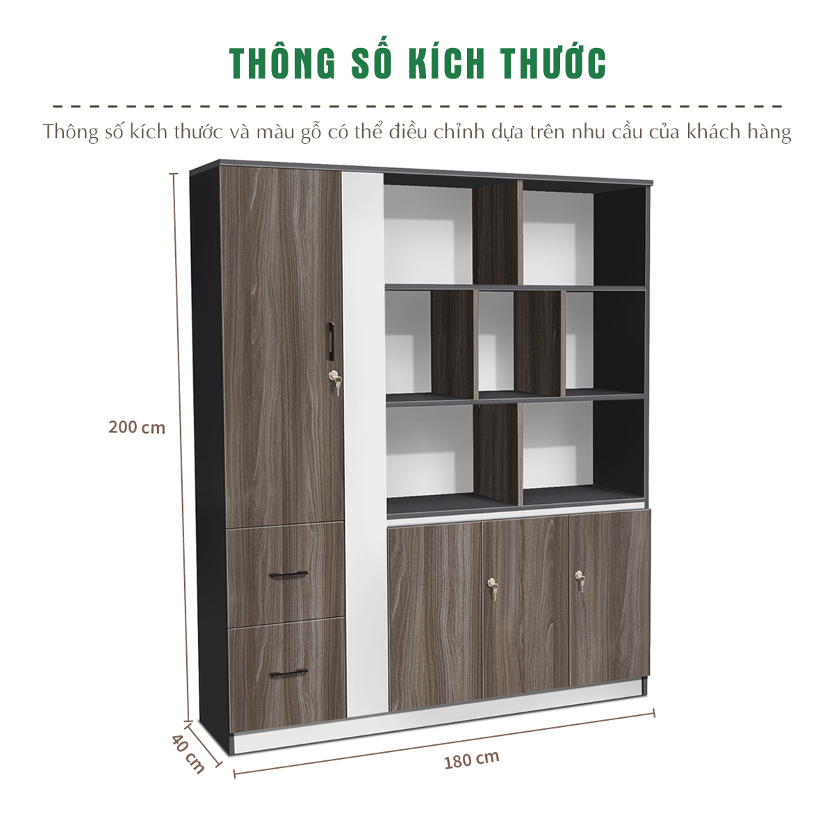 Tủ Giám Đốc TGD040-A1 là lựa chọn tuyệt vời cho không gian văn phòng của những nhà lãnh đạo muốn khẳng định phong cách và sự chuyên nghiệp. Với kích thước dài 180cm, cao 200cm và rộng 40cm, tủ TGD040-A1 mang lại không gian lưu trữ rộng rãi và hiệu quả.