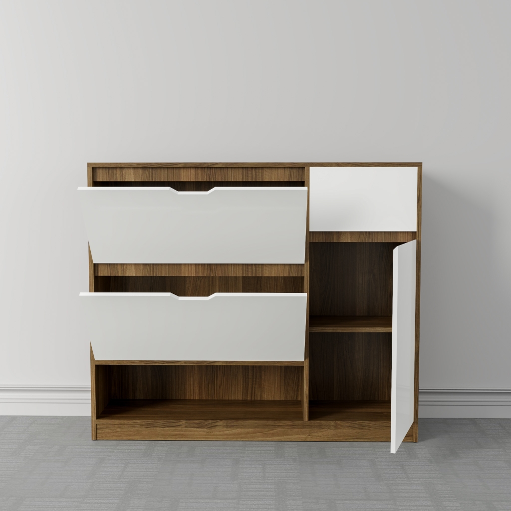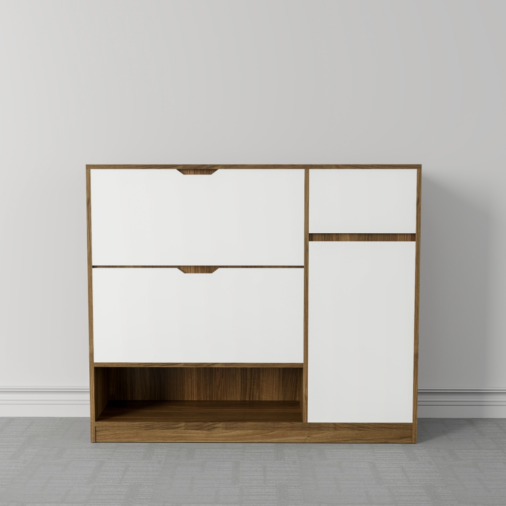 Bố cục thông minh với 2 cánh lật, 1 kéo và 1 ngăn tủ mở, công năng đa dụng