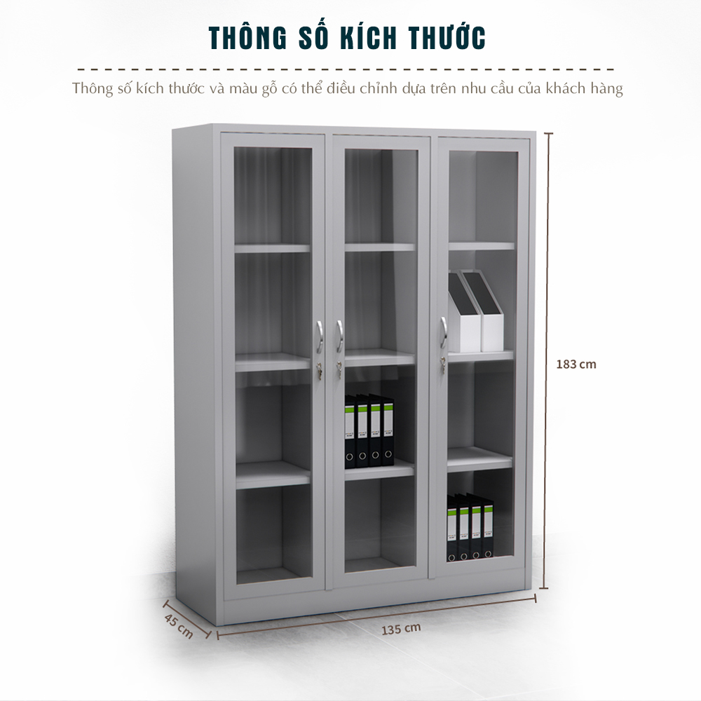 Sản phẩm sử dụng chất liệu sắt cao cấp, được phủ sơn tĩnh điện để tăng độ bền, chống trầy xước và gỉ sét, giúp giữ bề mặt tủ luôn sáng đẹp và dễ vệ sinh. Lớp sơn này cũng giúp sản phẩm giữ được vẻ ngoài hiện đại, chuyên nghiệp, tạo điểm nhấn cho không gian văn phòng.