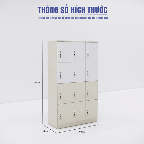 Tủ locker 2KTLK05 được thiết kế thông minh với 12 ngăn chứa đồ, chia thành 3 hàng dọc, mỗi hàng gồm 4 ngăn. Mẫu tủ này giúp người sử dụng dễ dàng phân chia đồ đạc, tạo sự gọn gàng và ngăn nắp cho không gian. Với thiết kế này, bạn có thể lưu trữ nhiều vật dụng cá nhân, tài liệu hoặc đồ dùng nhỏ gọn một cách thuận tiện và dễ dàng.