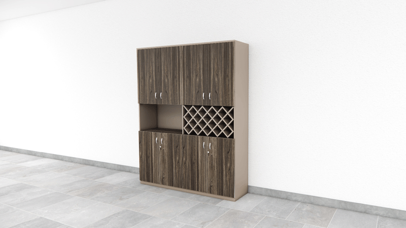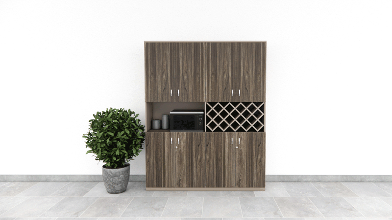 Tủ Pantry 007 của Nội thất giá tốt 2K là mẫu tủ đứng kích thước lớn, được thiết kế dành cho những không gian cần khả năng lưu trữ tối đa và bố trí khoa học. Điểm đặc biệt của sản phẩm nằm ở hệ tủ 8 cánh kết hợp ngăn rượu dạng tổ ong ở trung tâm, giúp nâng cao cả công năng lẫn giá trị thẩm mỹ.