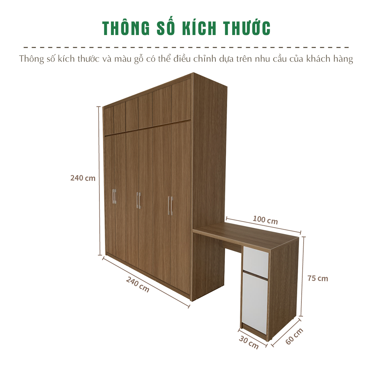 Với đường nét thiết kế sắc sảo, tủ quần áo TQA05 và bàn làm việc mang đến vẻ đẹp hiện đại và tinh tế. Màu sắc trang nhã, hài hòa với nhiều phong cách nội thất, giúp tạo nên một không gian sống và làm việc đầy phong cách.