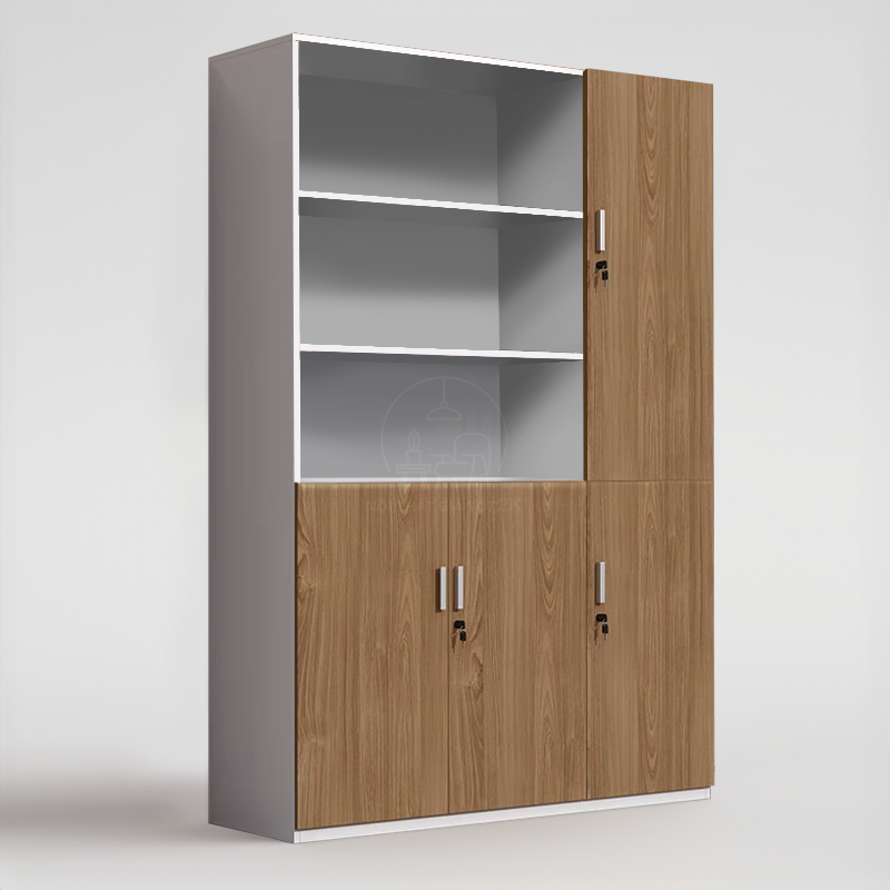 Thiết kế của tủ là sự kết hợp hài hòa giữa tính thực tế và thẩm mỹ. Với nhiều ngăn và kệ, tủ được tổ chức một cách thông minh để phục vụ nhu cầu lưu trữ và tổ chức tài liệu. Cánh cửa mở ra mở vào mượt mà, tạo điều kiện thuận tiện và dễ dàng truy cập đến nội dung bên trong.